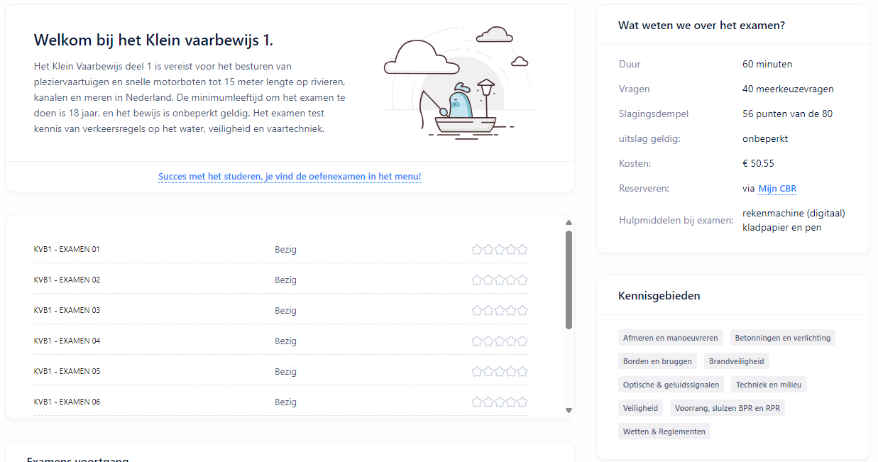 Bij Vaarrijexamen zijn we toegewijd aan het helpen van iedereen die zijn theorie-examen wil halen. Wij bieden de meest effectieve examentraining die je op elk apparaat kunt volgen, waar je ook bent. Zo bouw je vertrouwen op om je examen succesvol af te leggen.